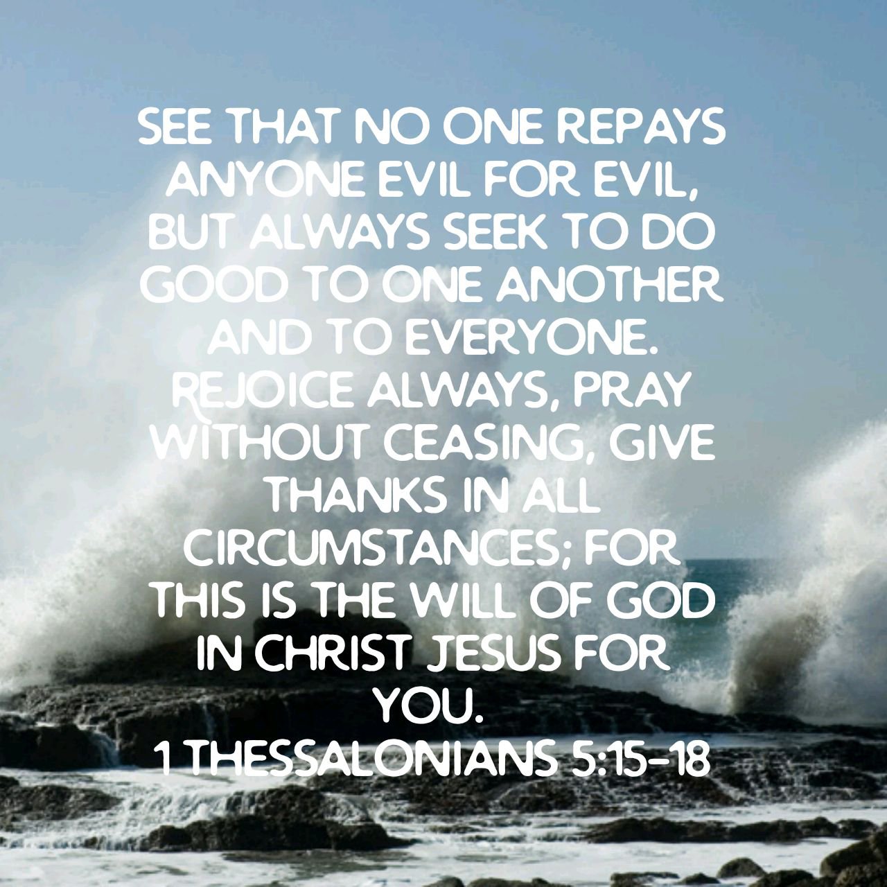 The verse above was the verse for the day on a group page. It reminded me of 1 Thessalonians 5:15-18,