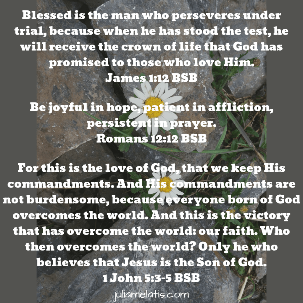 In spite of these things, we’re encouraged to persevere in the midst of trials, to be overcomers by our faith in God, and to persist (continue, keep on, never give up) in prayer with joy and patience, for God is our hope. So, with this in mind, please join me in praying continually for this country, our leaders, school boards, teachers, parents, and especially our vulnerable children and grandchildren.